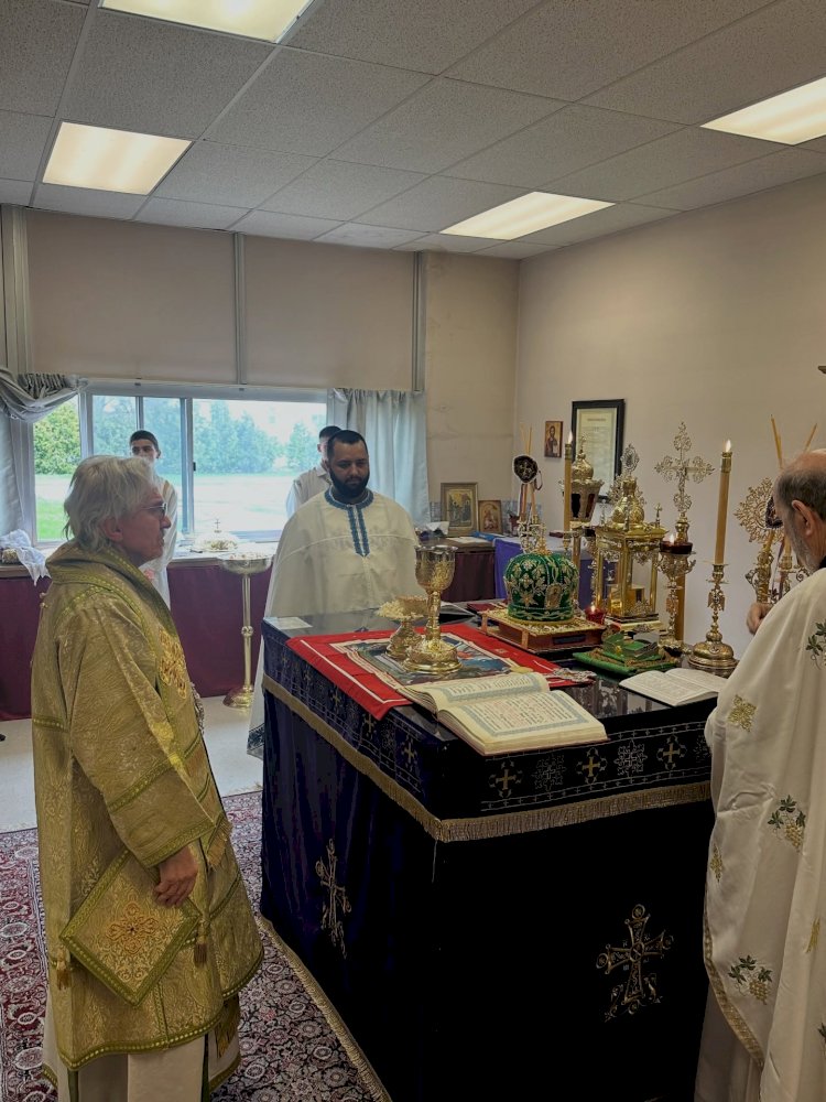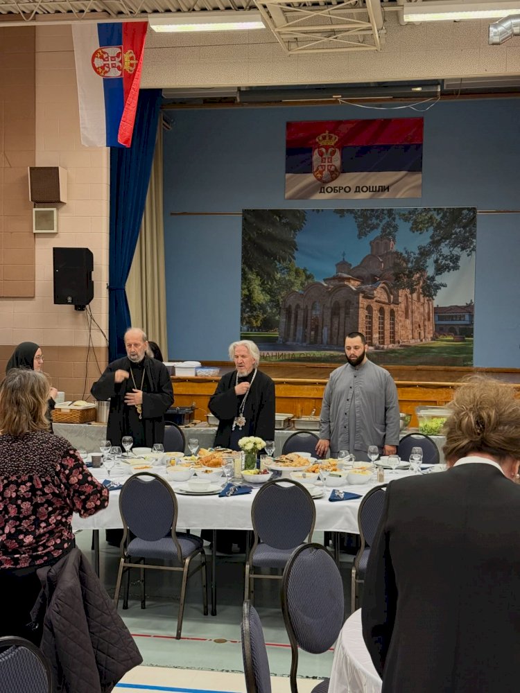 The Holy Hierarchical Liturgy was celebrated by His Eminence Archbishop of Toronto and Metropolitan of Canada Mitrofan, with the concelebration of the retired Protopresbyter-Stavrophor Miroljub Todorovic, parish priest Fr. Marko Dimic, and diocesan deacon Petar Marjanovic.
